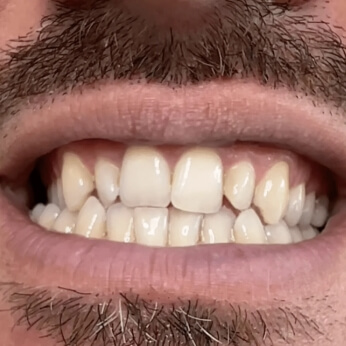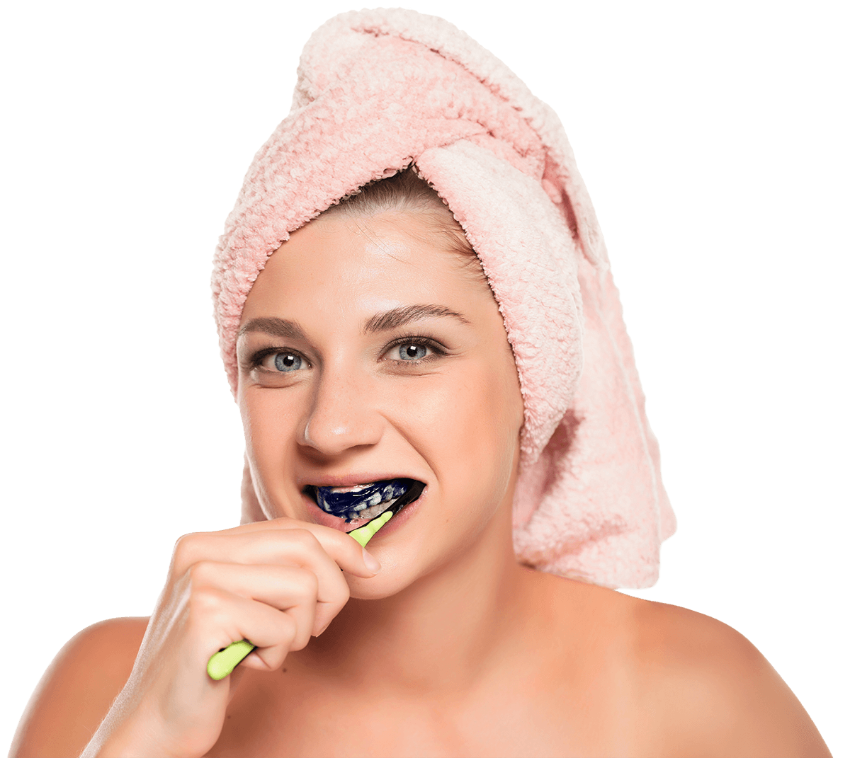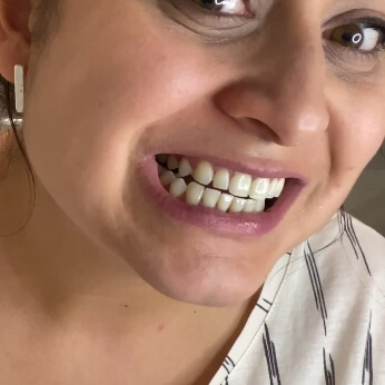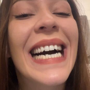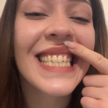Das Auftragen eines violetten Korrekturgels auf die Zähne neutralisiert Gelbtöne und sorgt für ein deutlich helleres Weiß. Es handelt sich nicht um eine chemische Zahnaufhellung und es werden keine relevanten Veränderungen an den Zähnen verursacht, daher ist die Anwendung unbedenklich.